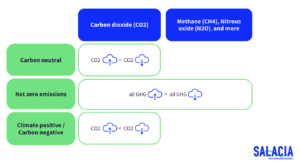 The first difference is the type of emissions. Carbon neutrality is in fact equal to net zero carbon emissions, but it is not the same as net zero emissions, which covers the all GHG emissions. Therefore, it is crucial to specify ‘net zero carbon’ or ‘net zero emissions’.