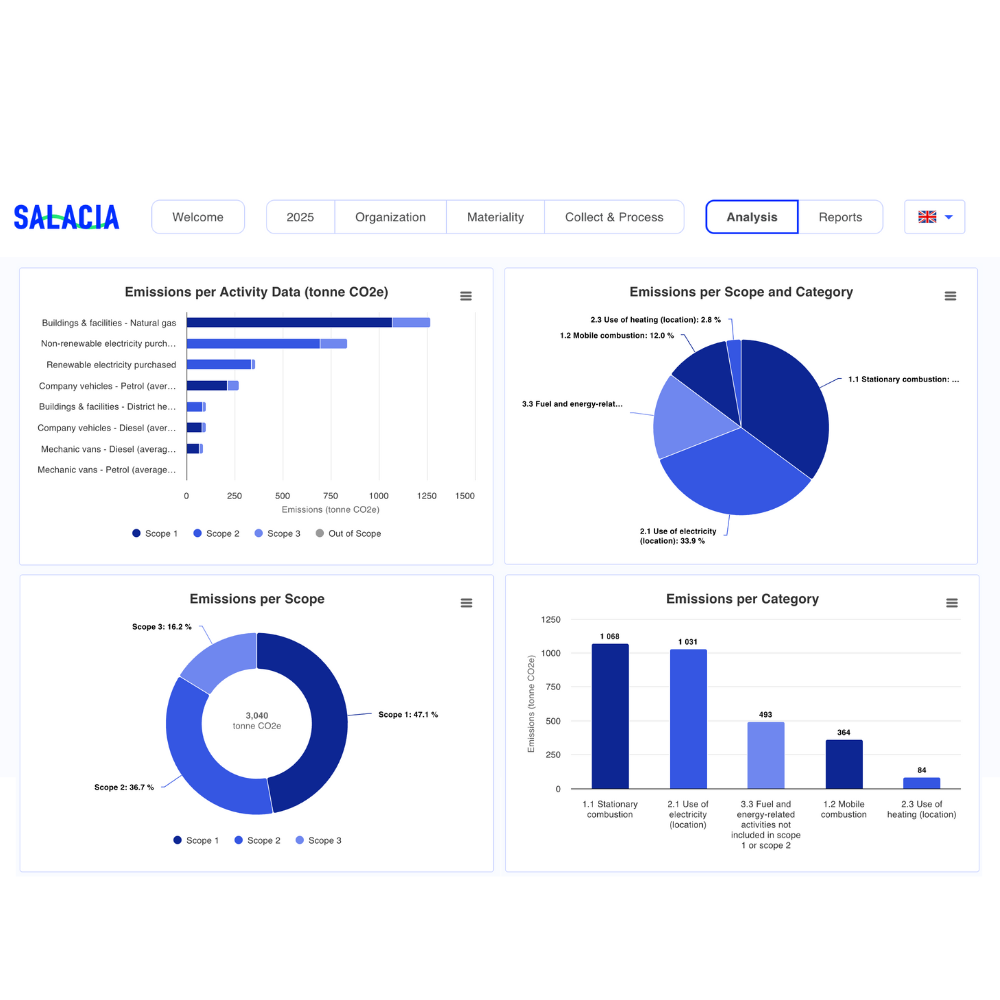 Accurate carbon accounting is the foundation of credible CSRD reporting – and many organisations lack the tools to do it right. Our platform simplifies the process with an AI-powered matching tool that automatically links your activity data to the right emission factors. With high-granularity data and built-in methodologies, you can calculate Scope 1, 2 and 3 emissions with high precision and consistency. Use the insights to set targets with our scenario module, optimise strategy and report with confidence.