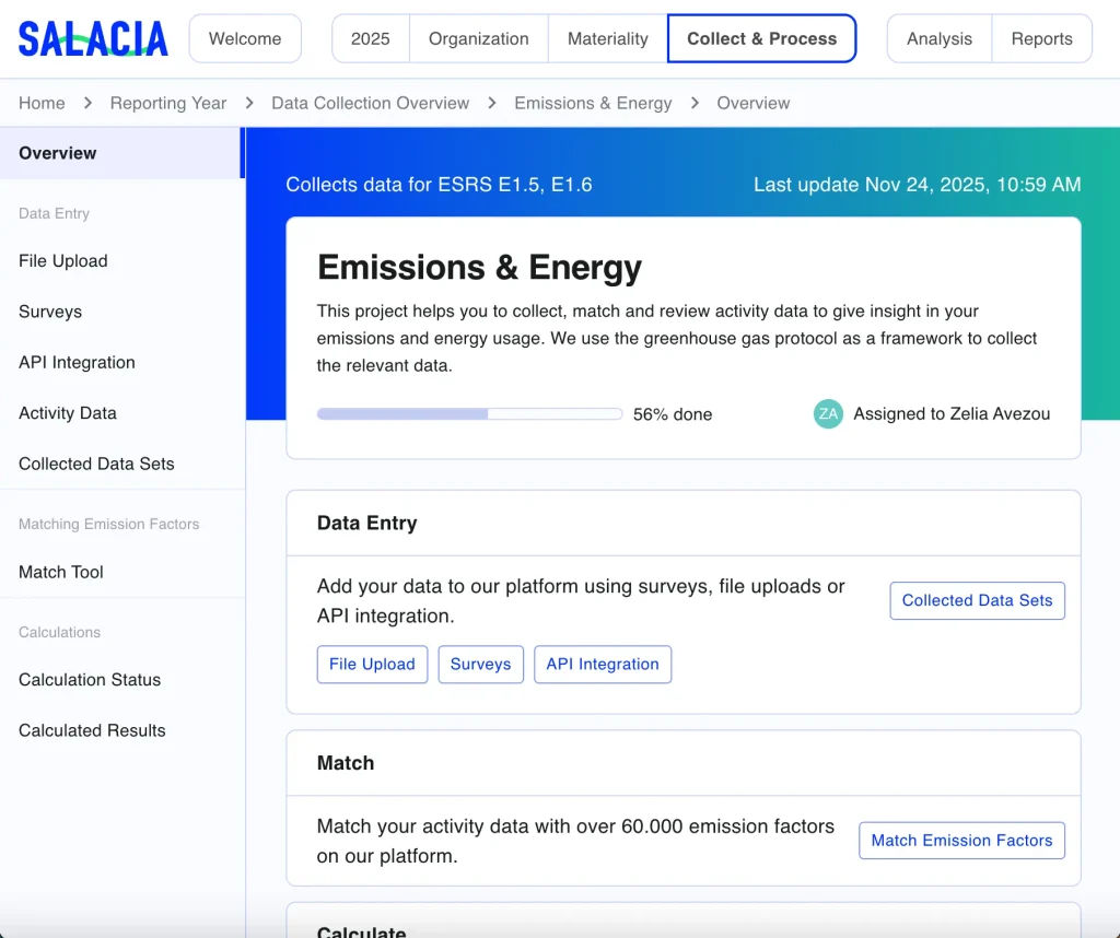 Data collection is often a barrier to consistent ESG reporting. Our solution adapts to your existing setup—whether that’s spreadsheets, APIs, or manual entry—so you don’t need to reinvent your processes. Whether you’re centralised or decentralised, you can collect and manage ESG data in a way that works for you—without compromising on quality or control.